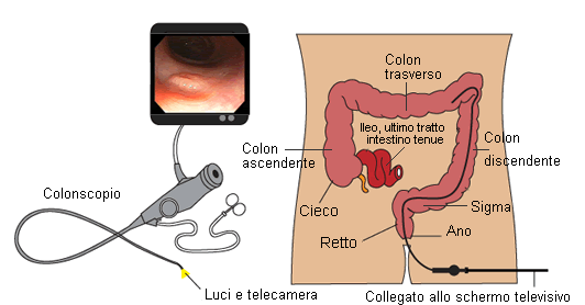 La colonscopia è un esame endoscopico, che permette cioè di guardare l’interno del colon. Lo strumento usato per fare quest’esame è un endoscopio specifico per il colon, chiamato "colonscopio". Perciò l’endoscopia del colon è chiamata "colonscopia".