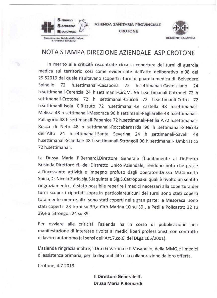 Consulta la rubrica dell'Azienda Sanitaria Provinciale di Crotone.