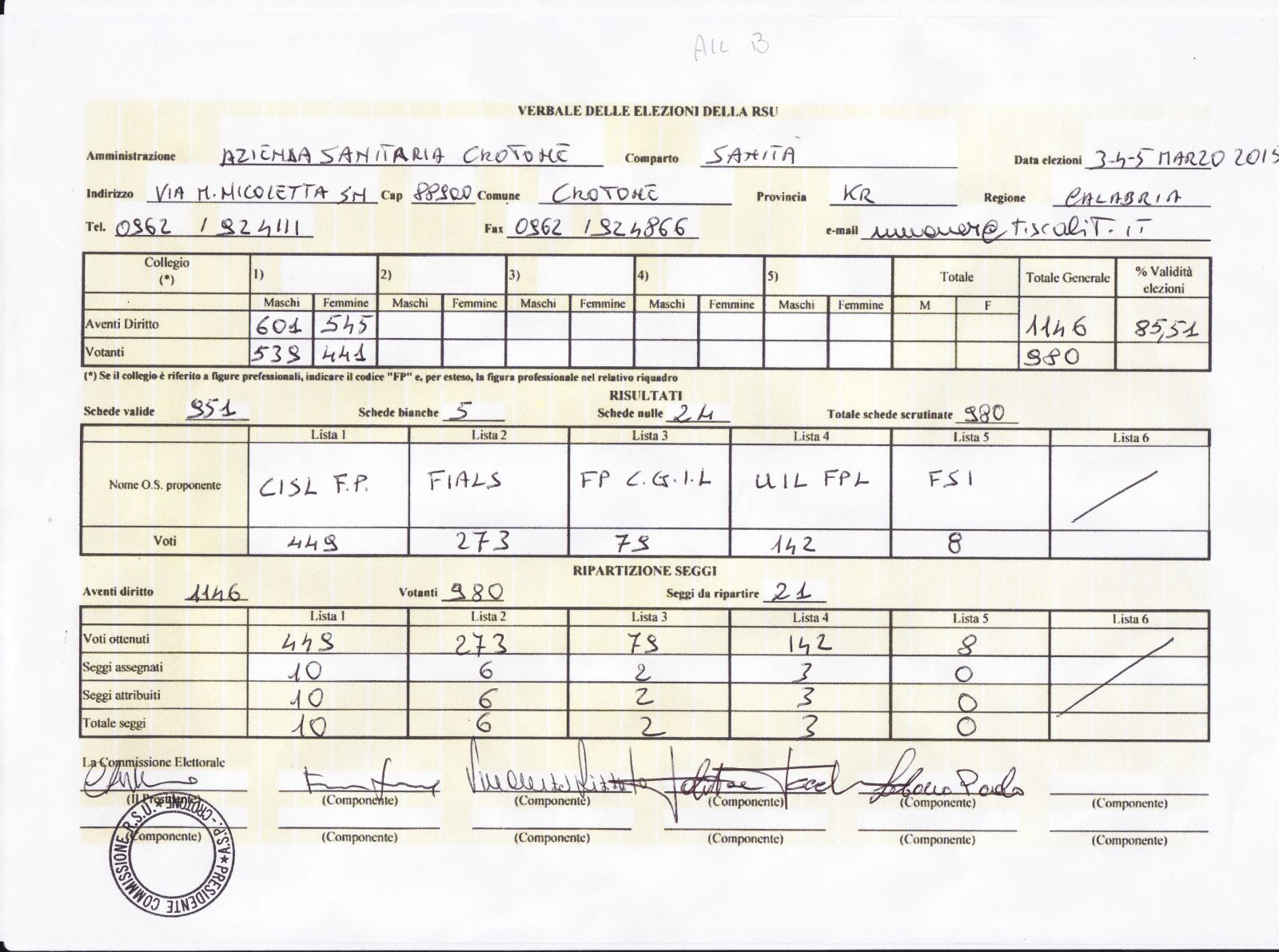 Verbale  della Commissione Elettorale per la trasmissione telematica all'ARAN