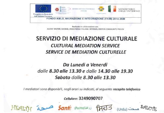 Nell’ambito del Progetto FAMI (Fondo Asilo,Migrazione e Integrazione 2014-2010, co -finanziato dall’Unione Europea) del Ministero dell’Interno,l’Asp di Crotone, in collaborazione con le Associazioni Agorà Kroton,Baobab,Croce Rossa Italiana,Intersos,Kroton Community e Pro.civ