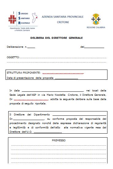 Si informano le Unita Operative competenti che la veste grafica degli atti deliberativi  da personalizzare, con decorenza immediata, assumerà il formato che si allega.